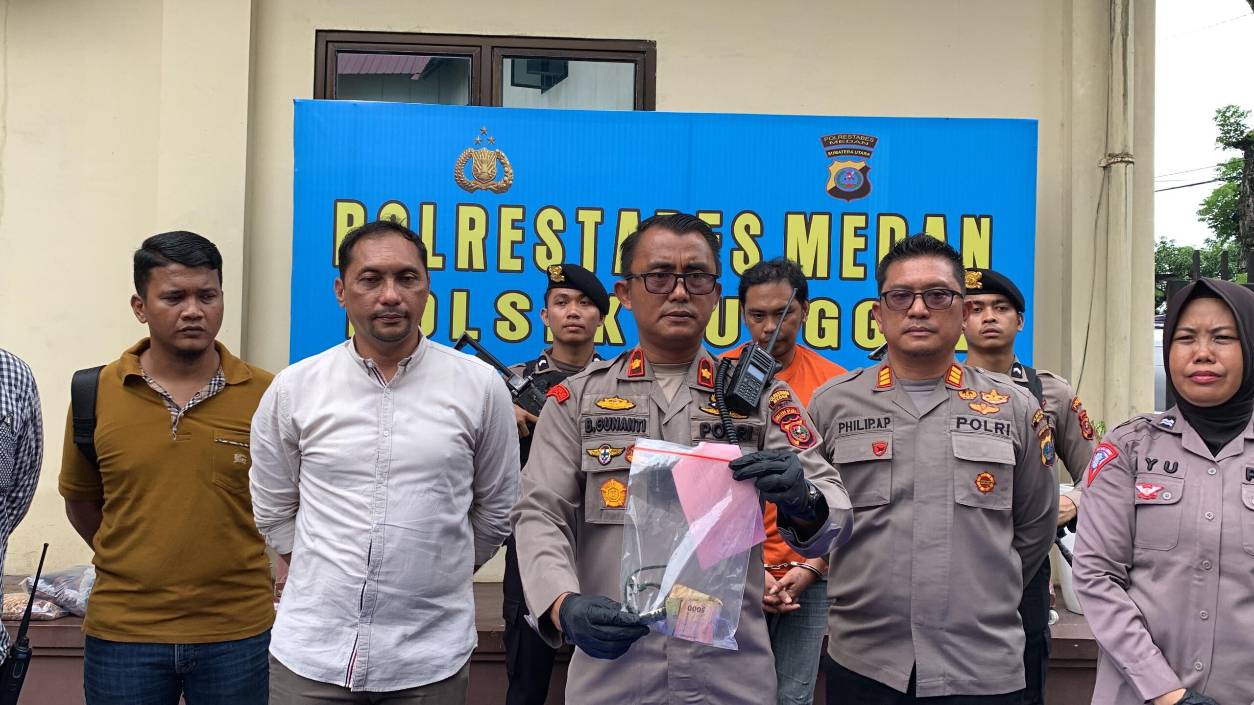 MEDAN – Polsek Sunggal menggelar kasus Tindak Pidana Pencurian Dengan Kekerasan, yang terjadi pada Budi (24) warga Medan Amplas di Mapolsek Sunggal, Jalan TB Simartupang Medan, Jumat, (13/09/2024)