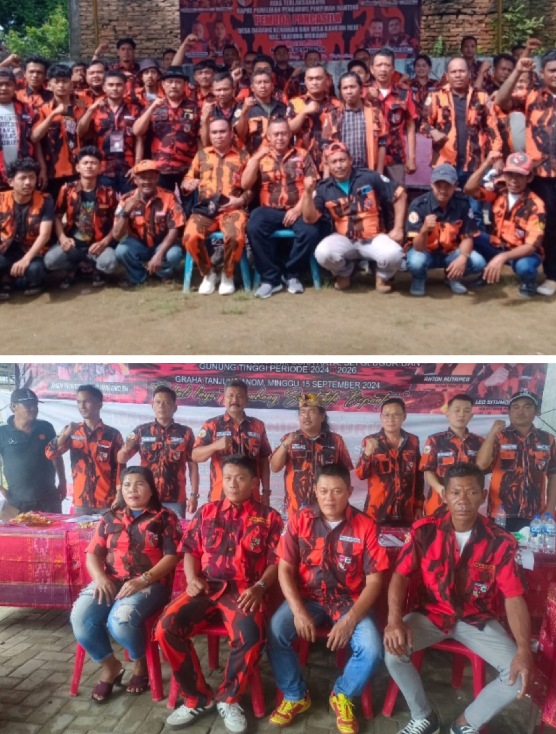 FOTO BERSAMA: Pengurus bersama ketua ranting terpilih Kecamatan Tanjung Morawa (atas) dan pengurus PAC PP Pancurbatu (bawah).