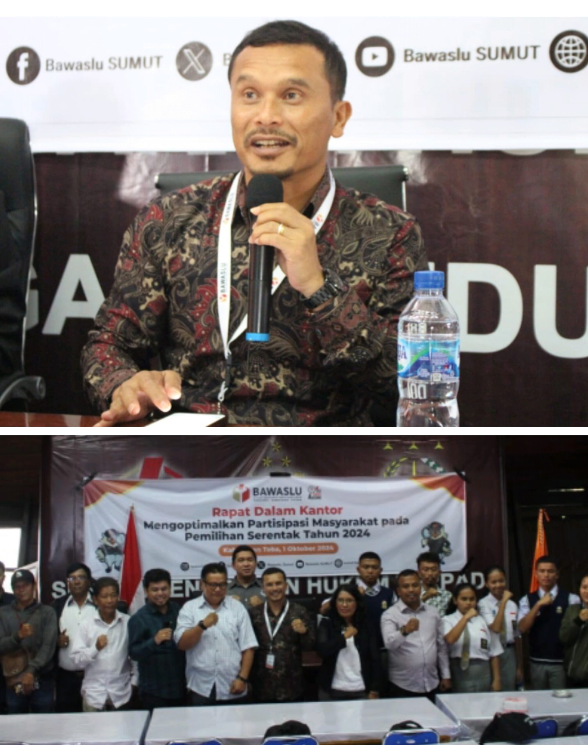 “Kami akan terus menyisir setiap jengkal kekuatan rakyat, kekuatan publik untuk bersama Bawaslu mencegah pergerakan politik uang pada Pemilihan Serentak 2024. Hari ini dari tempat ini kita yang berada dalam forum ini organisasi pemuda, pemilih pemuda, insan per, para tokoh agama dan masyarakat kita mulai aksi cegah dan lapor setiap potensi politik uang dilingkungan kita masing-masing. Rangkul semua saudara dan tetangga untuk ikut serta,” ujar Saut Boangmanalu Kordiv Humas Datin Bawaslu Sumatera Utara saat membuka acara Rapat Dalam Kantor (RDK) sesi pertama Bawaslu Sumut yang dilaksanakan di Sekretariat Bawaslu Toba, Selasa (01/10/2024).