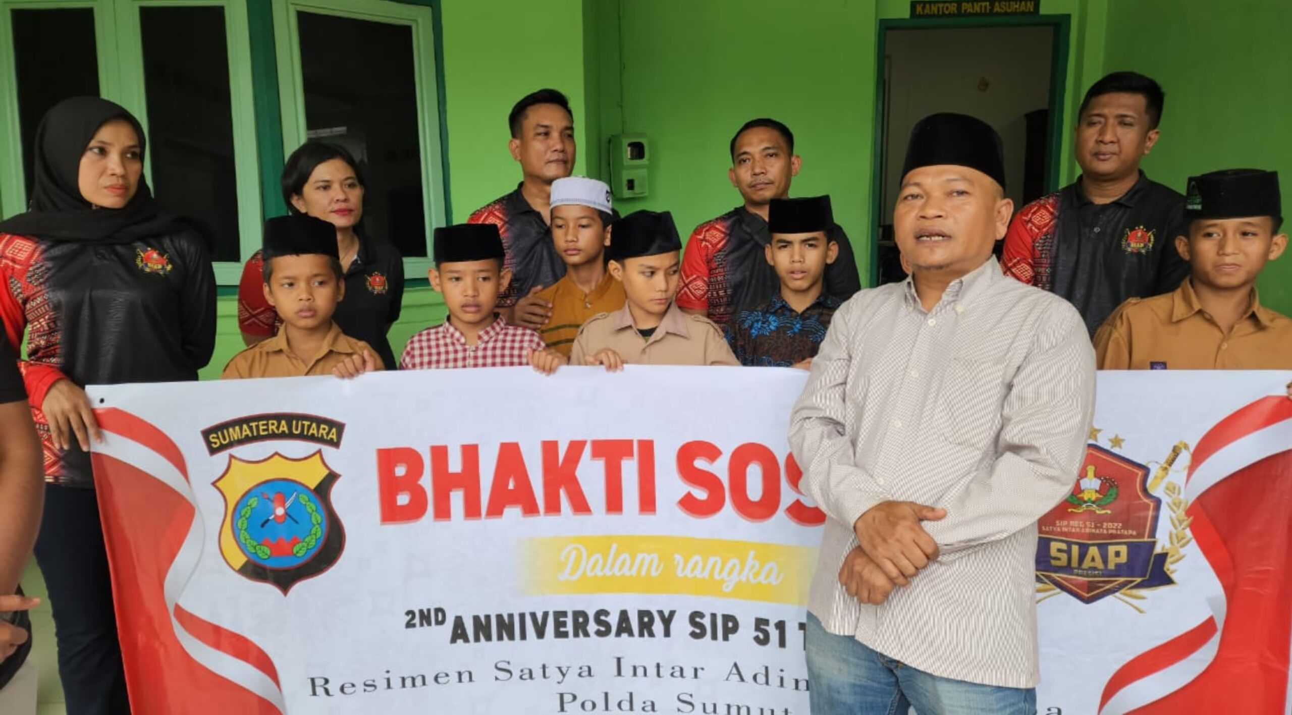 SERGAI – Perwira Polri Sekolah Inspektur Polisi (SIP) Angkatan ke-51 SIAP Polda Sumatera Utara (Sumut) menggelar bakti sosial di panti asuhan Yayasan cinta anak di Jalan Pintu Air Kota Medan dan Panti Asuhan Al-wasliyah di Jalan Ismailiyah Kota Medan, Sabtu (19/10/2022).