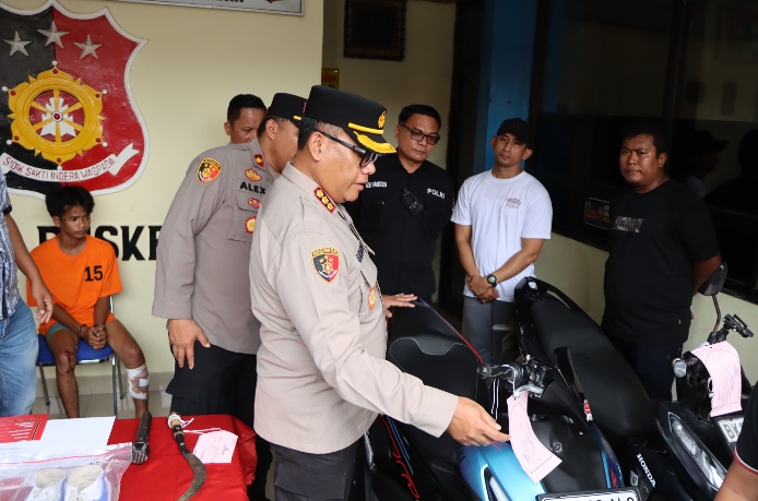 dengan helm dan senjata tajam celurit. Saat dilakukan pengejaran, sepeda motor yang digunakan oleh pelaku terjatuh setelah bersenggolan dengan pengendara lain,” jelas Kombes Gidion.