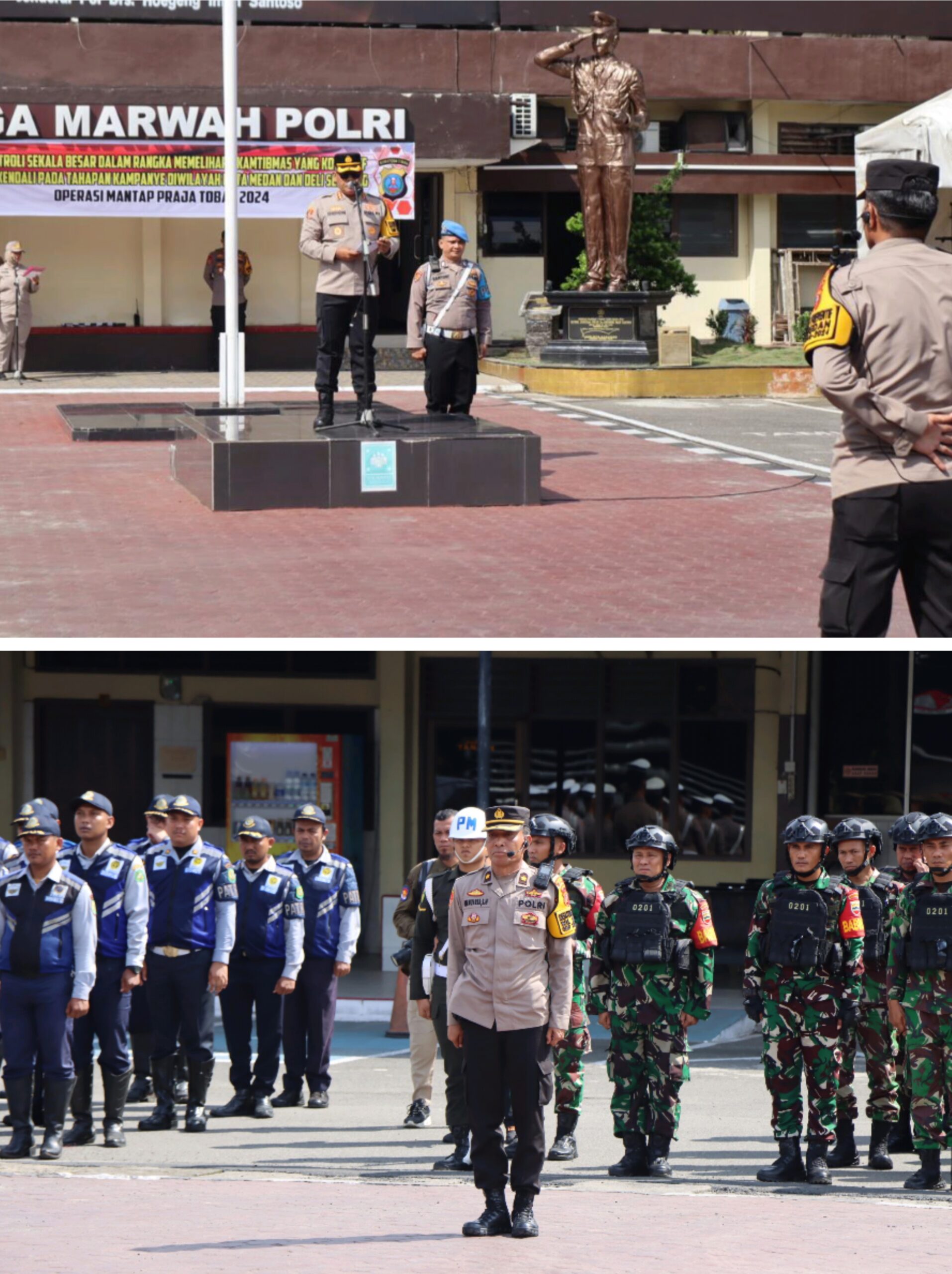 MEDAN – Kapolrestabes Medan Kombes Pol Gidion Arif Setyawan memimpin apel patroli skala besar dalam rangka memelihara keamanan dan ketertiban masyarakat (kamtibmas) yang kondusif dan terkendali pada tahapan kampanye di wilayah kota Medan dan Deliserdang.