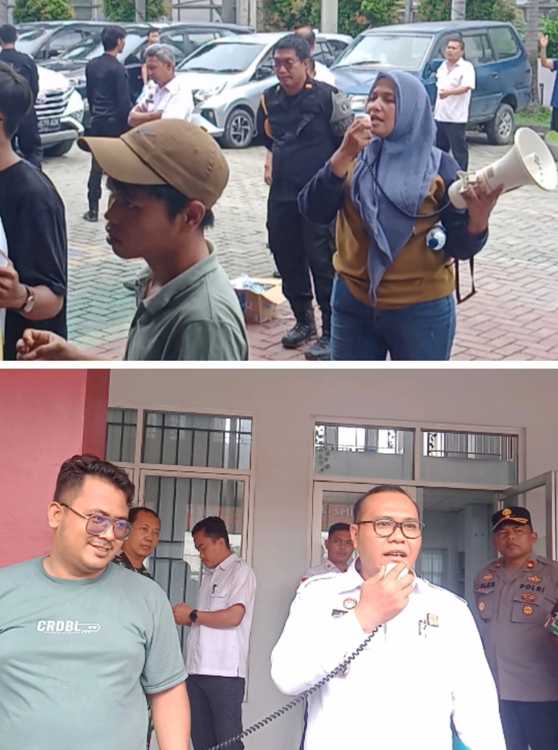 DESAK: Massa GAS-Indonesia saat unjuk rasa di depan pintu masuk LP Tanjung Gusta. Dian saat menjawab para pengunjukrasa.