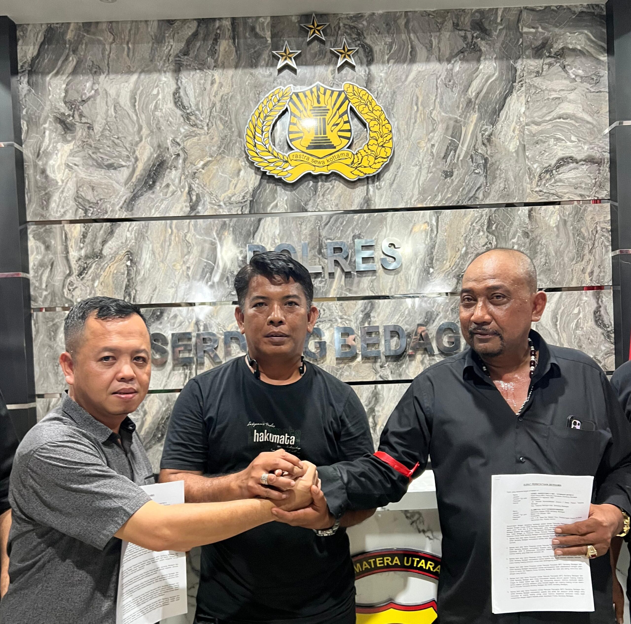 BERDAMAI: Sekretaris Satgas Grib Jaya Alamsyah dan Wakil Ketua MPC Sergai sepakat berdamai, Selasa (10/12/2024)