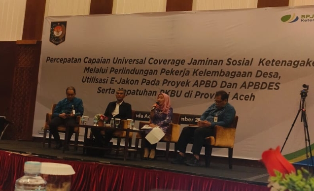“Atas nama Pemerintah Aceh menyampaikan terimakasih kepada Kemendagri atas kegiatan ini khusunya untuk mendorong peningkatan coverage kepesertaan jaminan sosial tenaga kerja di Aceh,” katanya pada kegiatan Forum Grup Discussion (FGD) yang mengambil tema Percepatan Capaian Universal Coverage Jaminan Sosial Ketenagakerjaan melalui perlindungan pekerja Kelembagaan Desa, Utilisassi E- Jakon pada Proyek APBD dan APBDes Serta Kepatuhan PKBU di Provinsi Aceh.