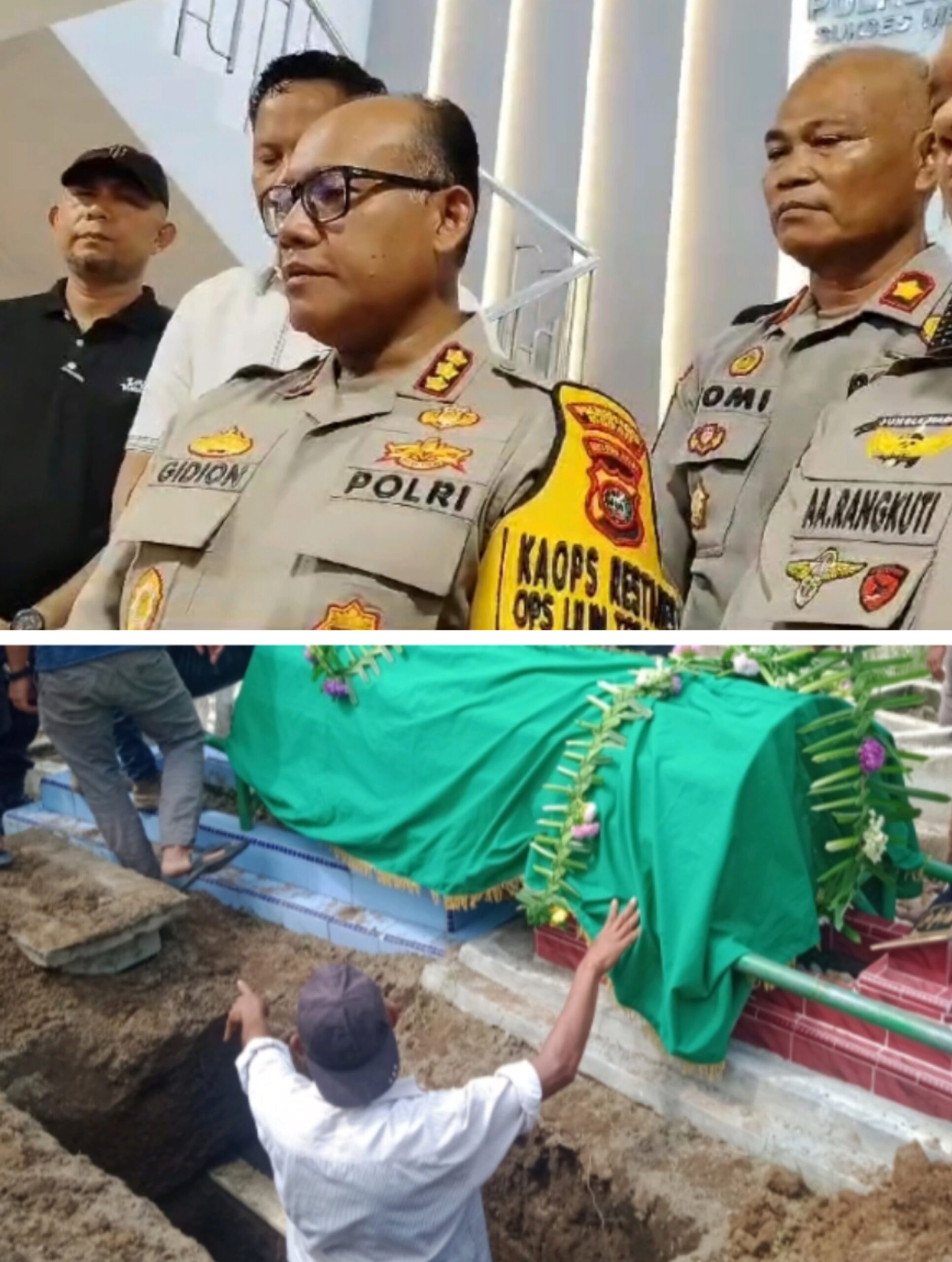 DIMAKAMKAN: Kapolrestabes Medan saat memberikan keterangan kepada wartawan. Dan jenazah Budianto Sitepu saat dimakamkan.