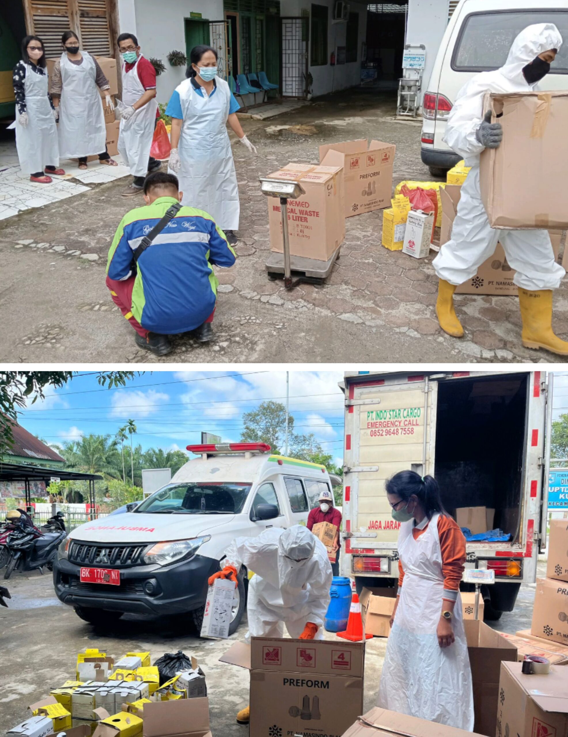 Teks photo: Petugas Kesling Puskesmas se Kab. Sergai melaksanakan pendistribusian limbah medis puskesmas kepada pihak ketiga. (*)