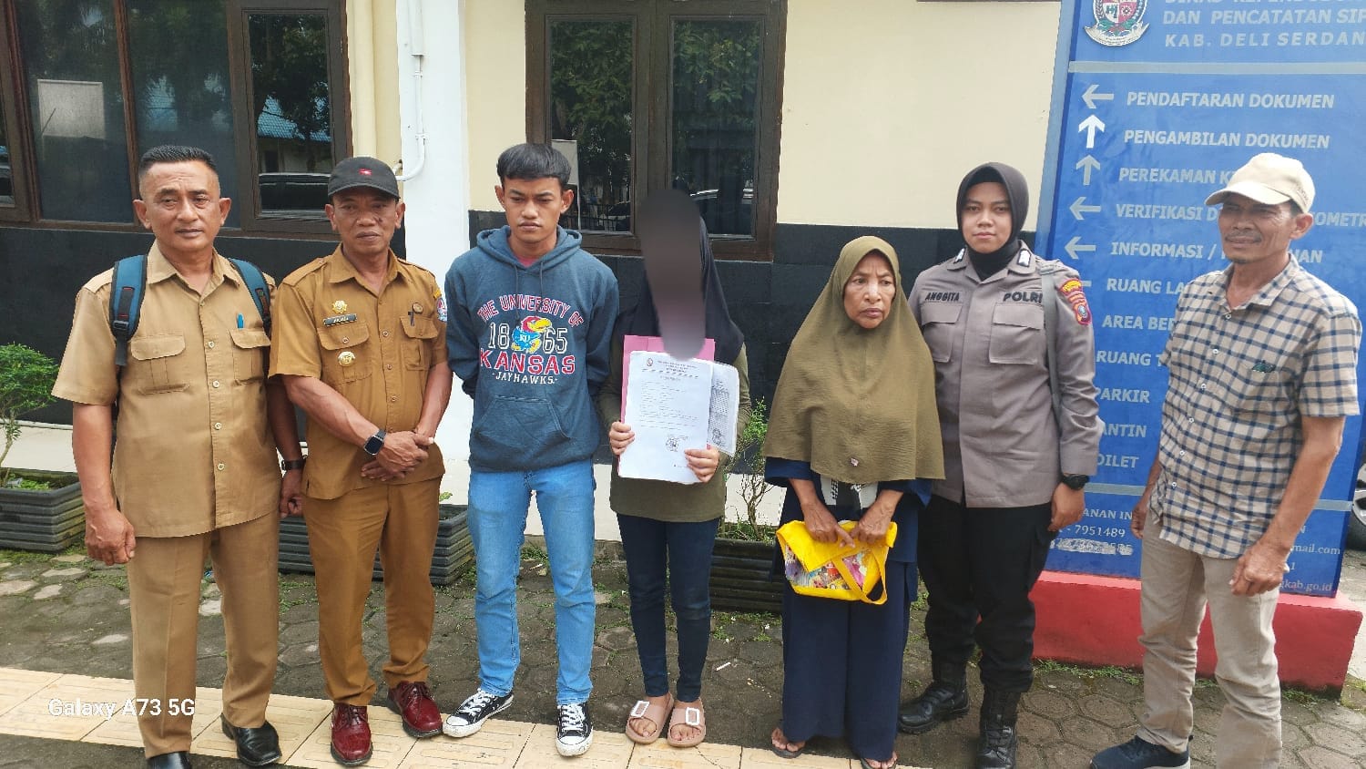 MEDAN – Polsek Delitua membantu membantu pengurusan data diri keluarga No (16) anak korban pencabulan oleh tetangganya.