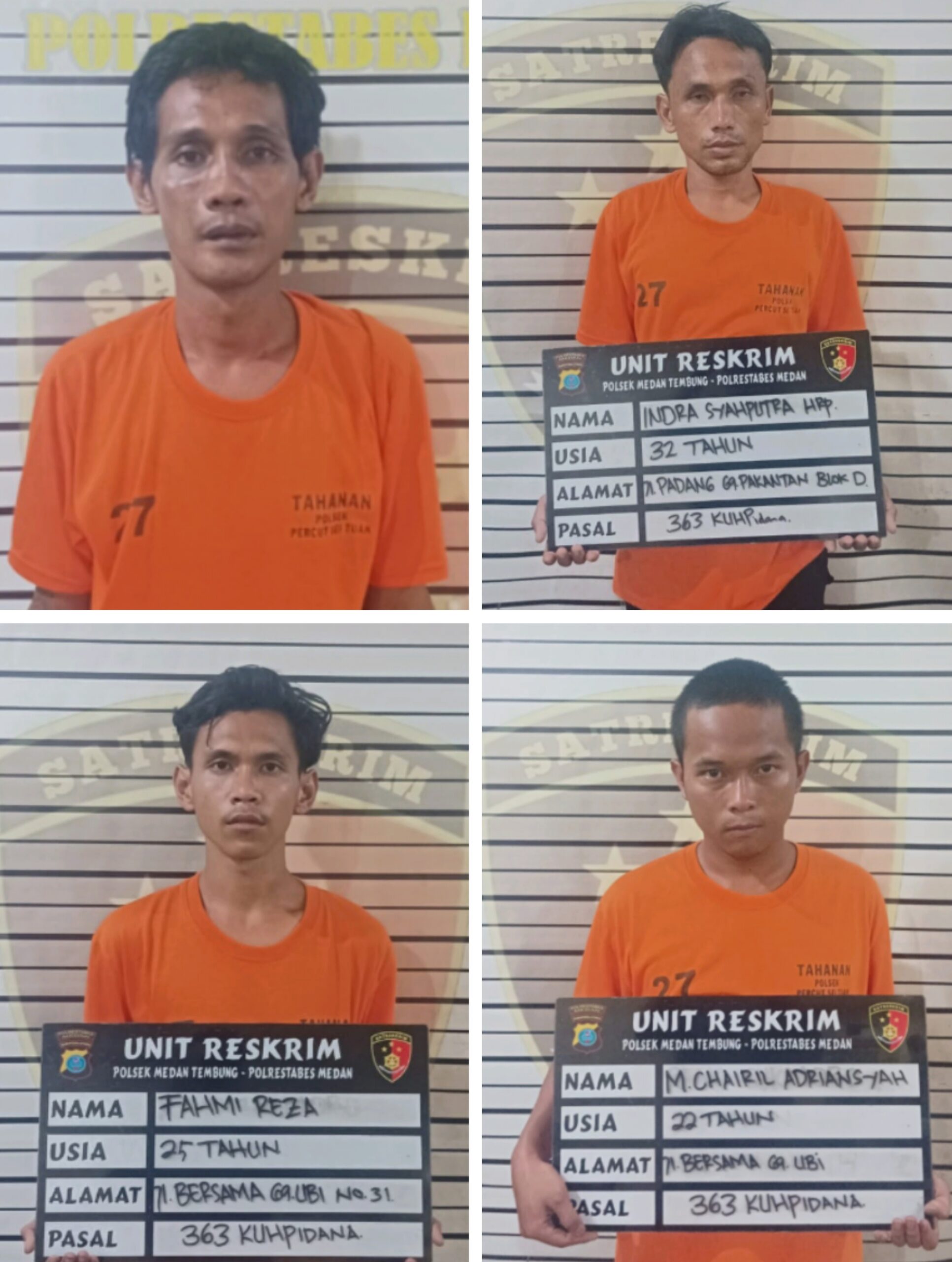 Kapolsek Medan Tembung, Kompol Jhonson Sitompul SIK didampingi Kanit Reskrim AKP J Simamora kepada wartawan pada Minggu (19/1/2025) mengatakan penangkapan keempat tersangka berawal saat pihaknya menerima laporan dari korban bahwa dirinya telah menjadi korban perampasan, kerugian satu unit Handphone (Hp) merek Iphone di di depan pintu Tol Bandar Selamat,