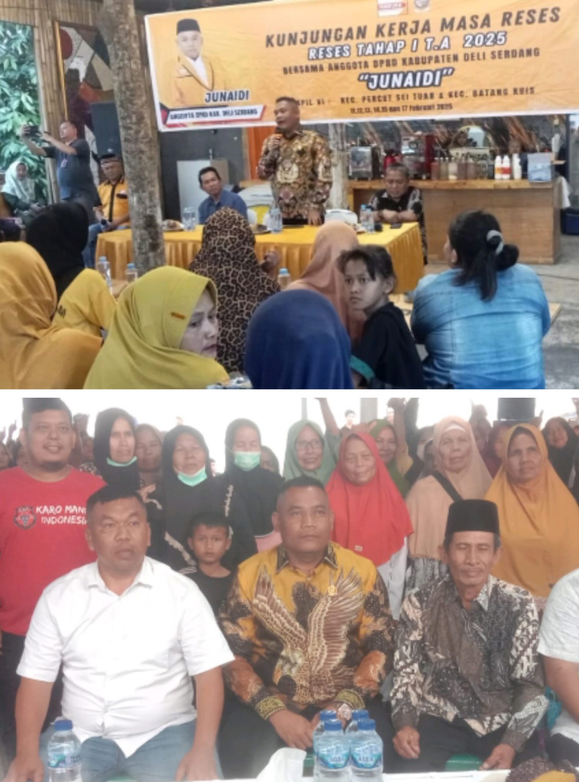 DELISERDANG – Anggota Dewan Perwakilan Rakyat Daerah (DPRD) Deliserdang, Sumatera Utara (Sumut), Junaidi menggelar reses di dua desa yakni Desa Tanjung Selamat dan Desa Saentis, Kecamatan Percut Sei Tuan, Kabupaten Deliserdang.