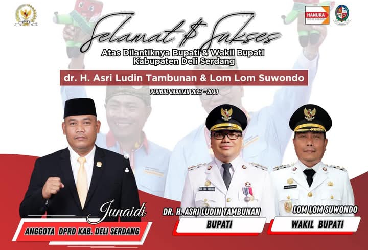 “Sehat pelayanan publik, sehat masyarakatnya, sehat lingkungannya dan sehat pemerintahannya, ini slogan dari Bapak dr Asri dan Bapak Lom Lom. Masyarakat Deliserdang berharap segera membuat gebrakan untuk kehidupan masyarakat yang lebih baik ke depannya,” ujar Junaidi yang juga anggota DPRD Deliserdang ini.