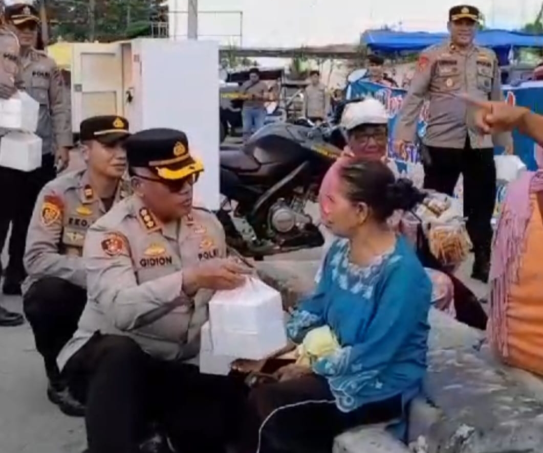 MEDAN – Kepala kepolisian (Kapolrestabes) Kota Medan, Kombes Pol Gidion Arif Setyawan bersama Kapolsek Medan Tuntungan, Iptu Eko Sanjaya serta sejumlah personil kepolisian lainnya turun bagikan takjil di Simpang Selayang, Kecamatan Medan Tuntungan, Kota Medan, Provinsi Sumatera Utara (Sumut), Senin (10/03/2025) sore.