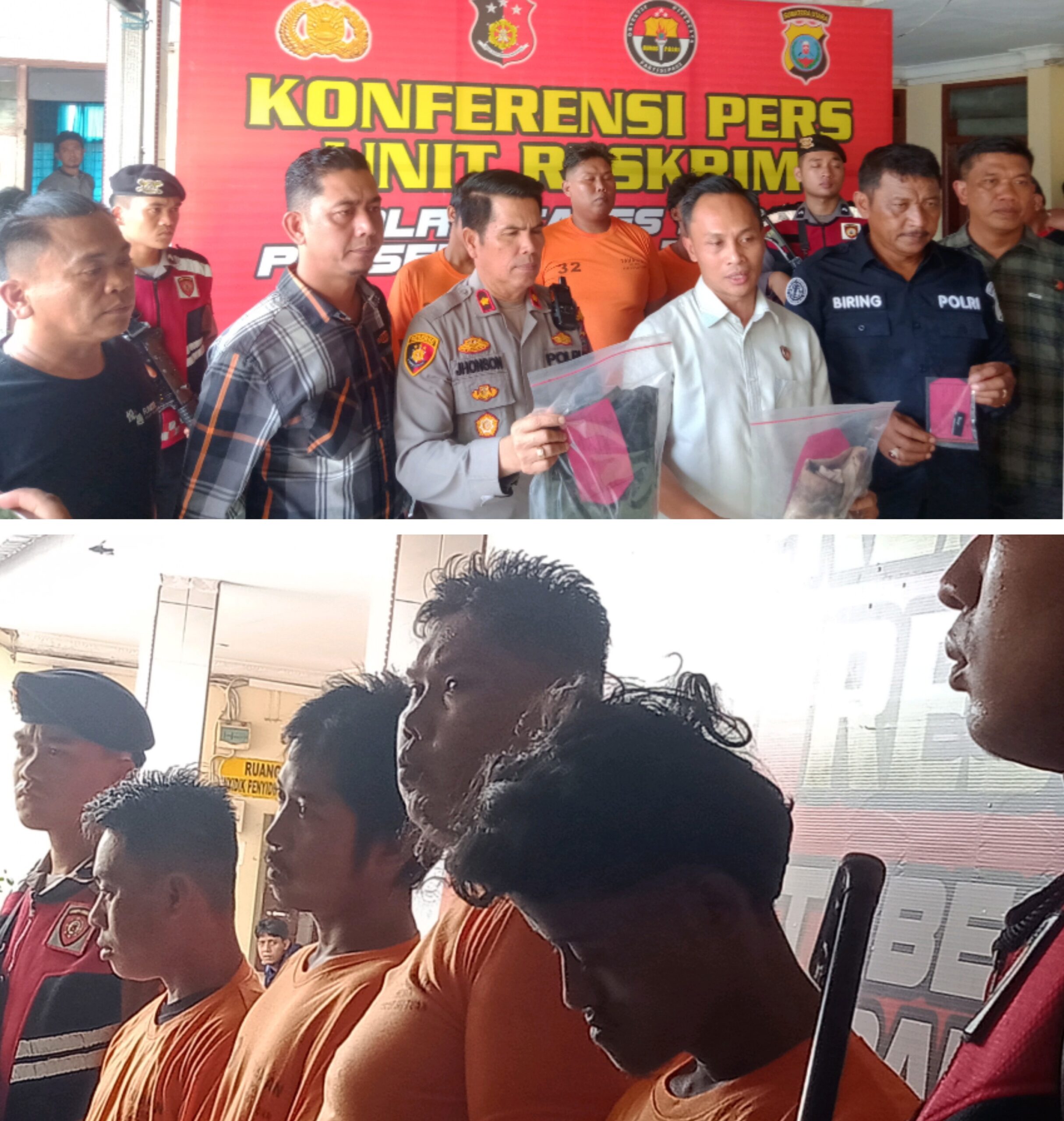Ditambahkan Kasat Reskrim, berdasarkan dari pengakuan Su, petugas melakukan pengembangan dan berhasil meringkus 3 pelaku lainnya, HA, MR dan RD. Selanjutnya para pelaku digelandang ke Mako guna proses pemeriksaan lebih lanjut.
