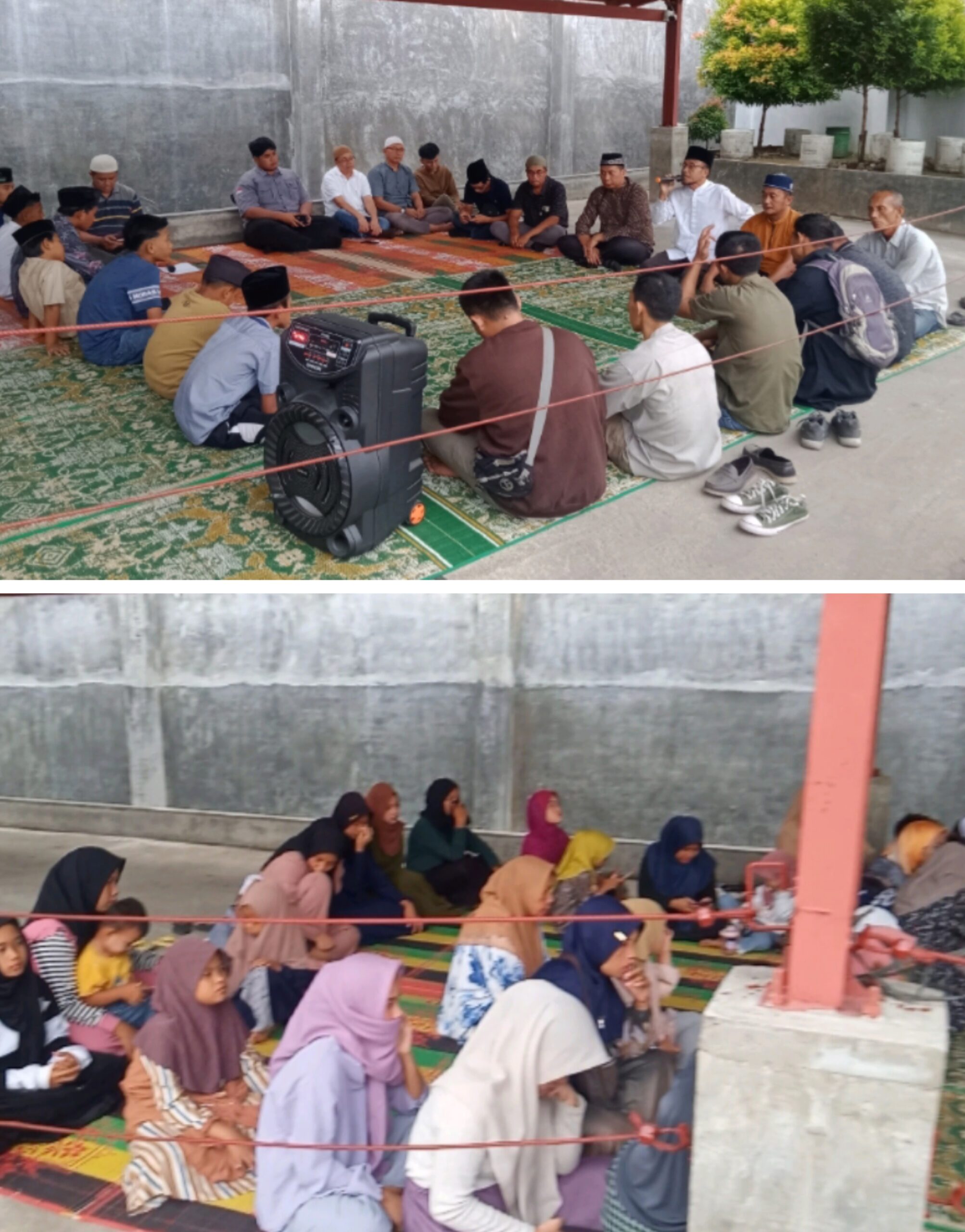 BERIKAN: Warga dan anak yatim piatu saat mendengar tausyiah.