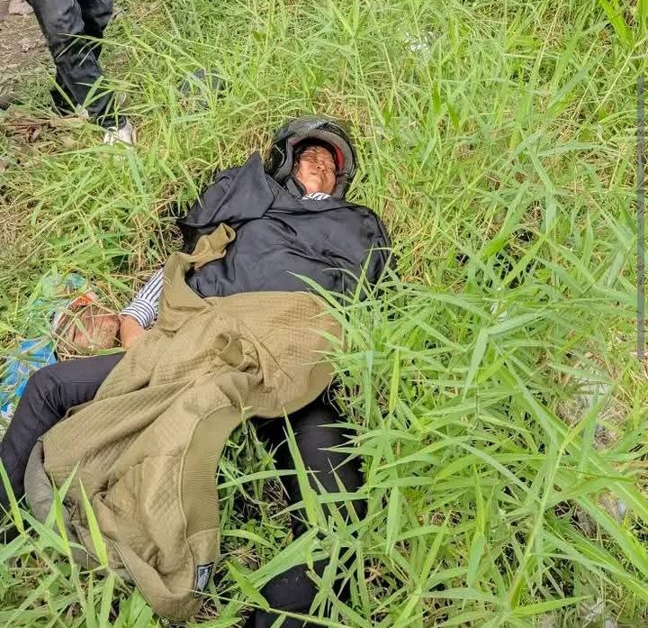 “Yang pertama kali melihat warga sini pas mau ke pergi ladang, terlihat mayat korban masih pakai helm, telentang di semak-semak dekat tebu,” ujar Juwita (34) salah seorang warga di lokasi kejadian.