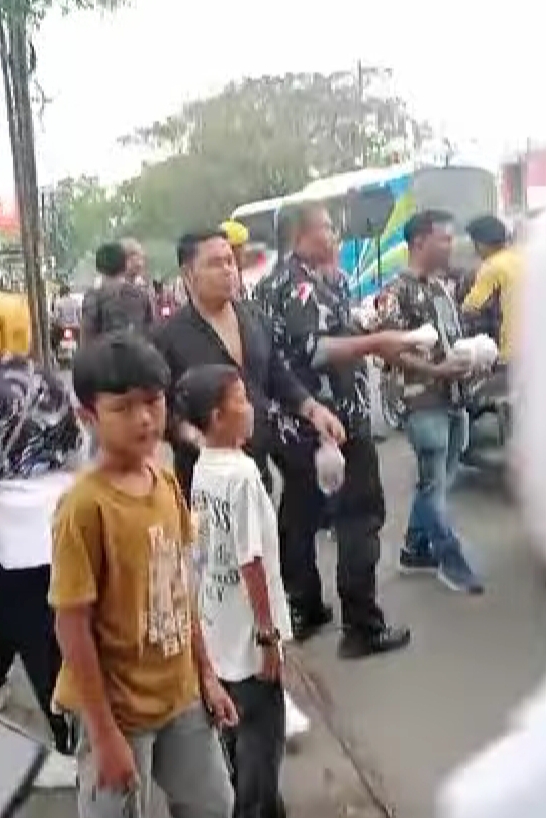 Meski sempat membuat arus lalu lintas macet, namun pembagian takjil yang dikomandoi Ketua Satgas AMPI Sumut, Budi Hartono Sormin alias Busor dapat berjalan lancar.