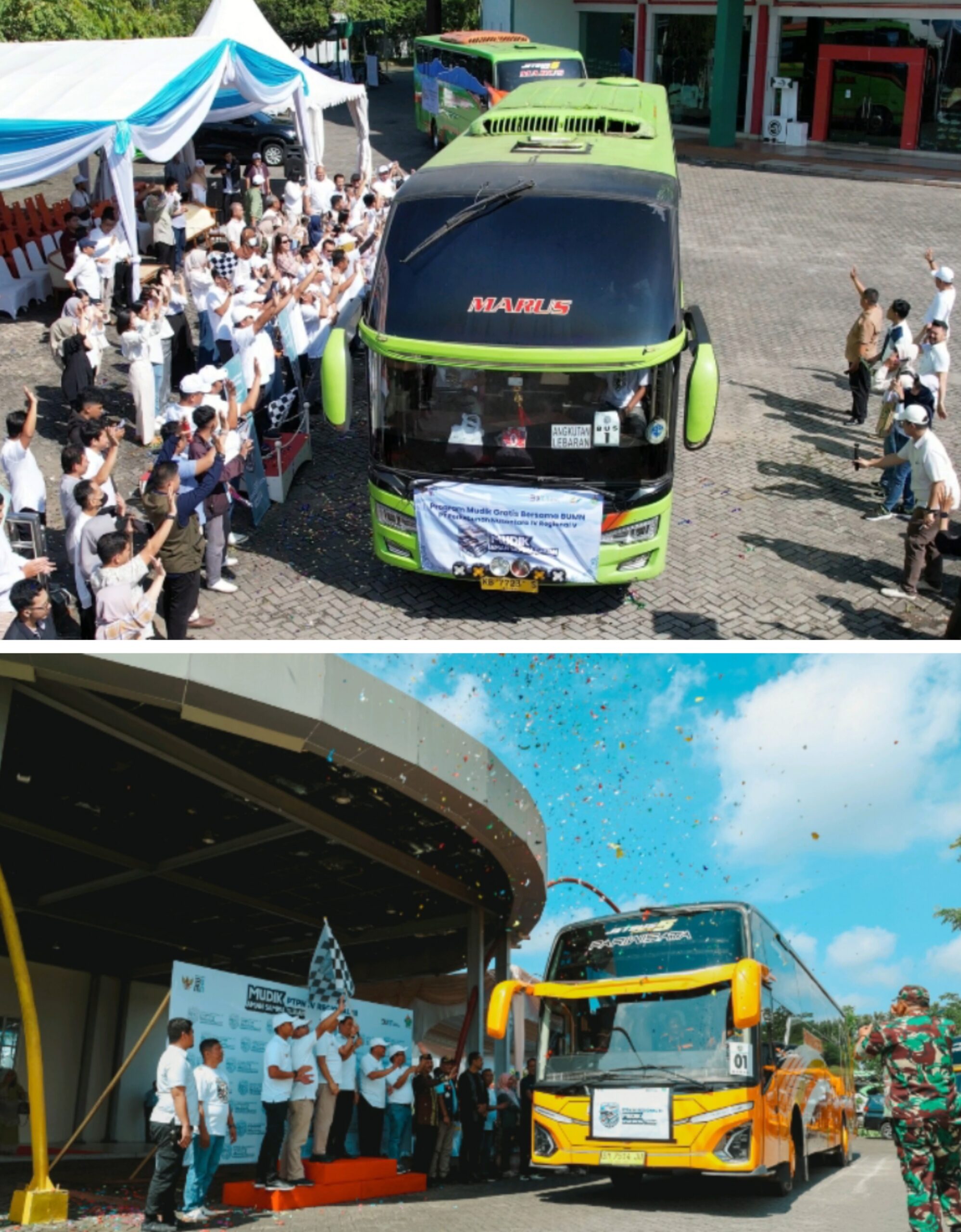 DIBERANGKATKAN : Sebanyak 1200 pemudik diberangkatkan PTPN IV PalmCo.