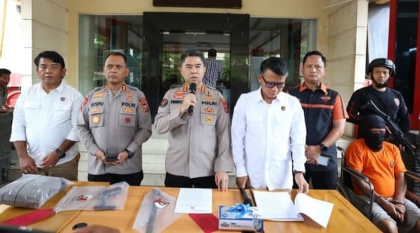 Dalam penangkapan tersebut, polisi menyita barang bukti berupa satu pucuk senjata api jenis FN, dua butir peluru, sebilah parang, pakaian pelaku, dan sepeda motor milik korban.