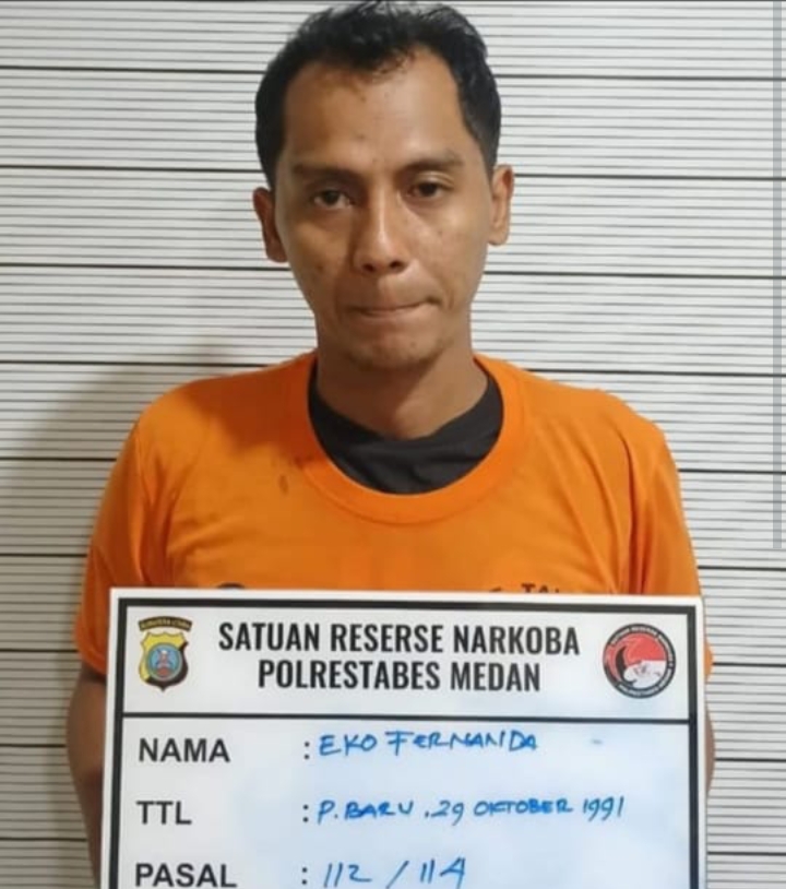 Eko disergap petugas yang menyaru sebagai pembeli di Gang Mantri, Jalan Brigjen Katamso, Kelurahan Aur, Kecamatan Medan Maimun pada Jumat (11/4/25) sore kemarin.