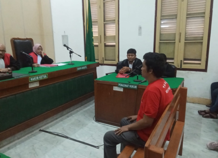 SIDANG: Anggota OKP Rahmad Dedy Silitonga, terdakwa pengeroyokan terhadap anggota Tentara Nasional Indonesia (TNI) Prada Defliadi Susanto Kapena saat sidang.