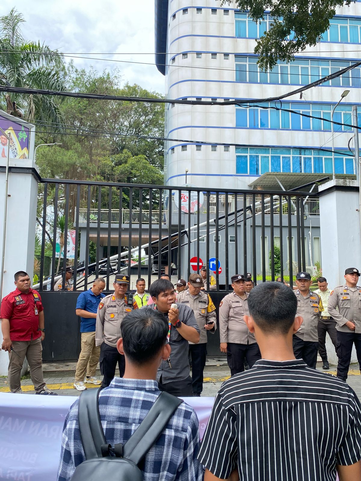 MEDAN – Puluhan mahasiswa berunjuk rasa di Kantor DPRD Medan meminta agar Crypton dan Capital Building ditutup. Mahasiswa menuding kedua tempat hiburan malam bermasalah dan merugikan banyak pihak.