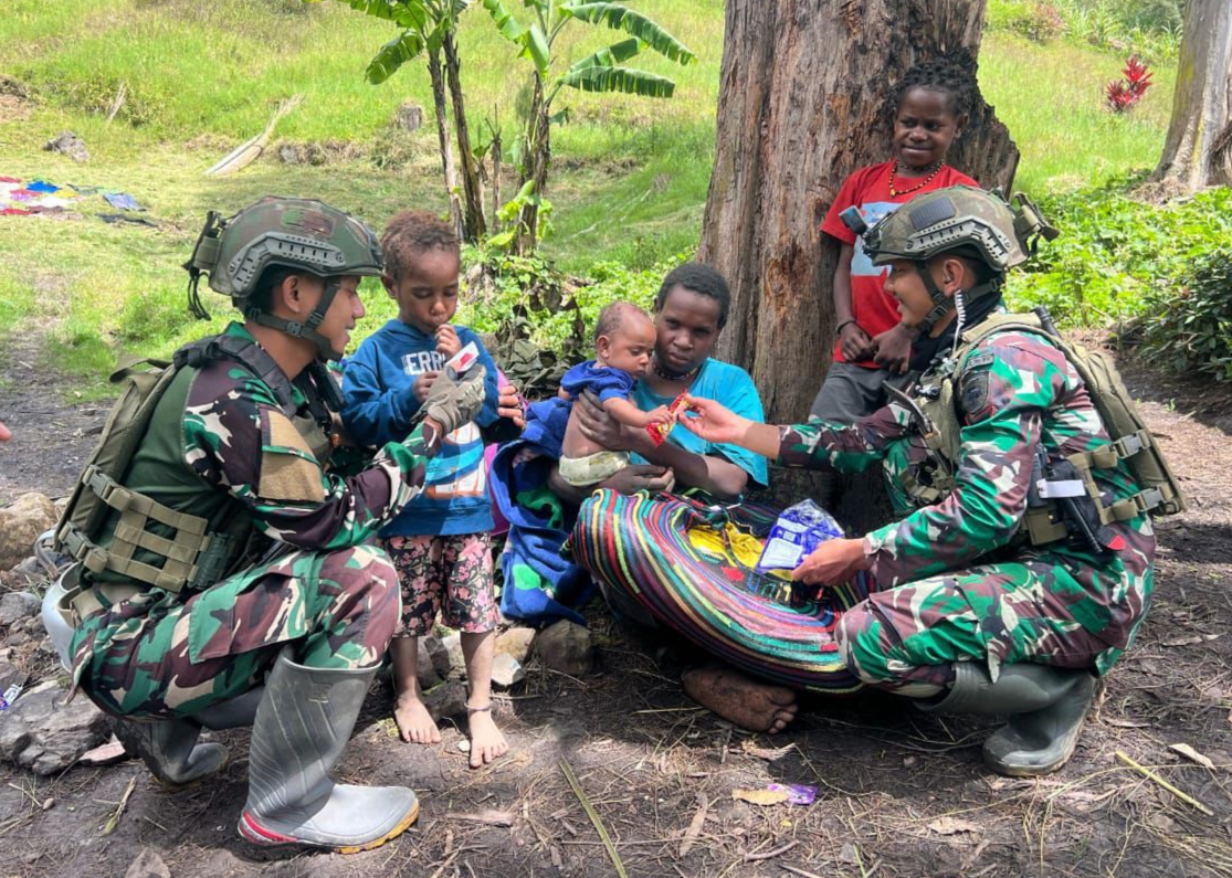 Prajurit TNI Taklukkan Hati Warga Papua dengan Permen