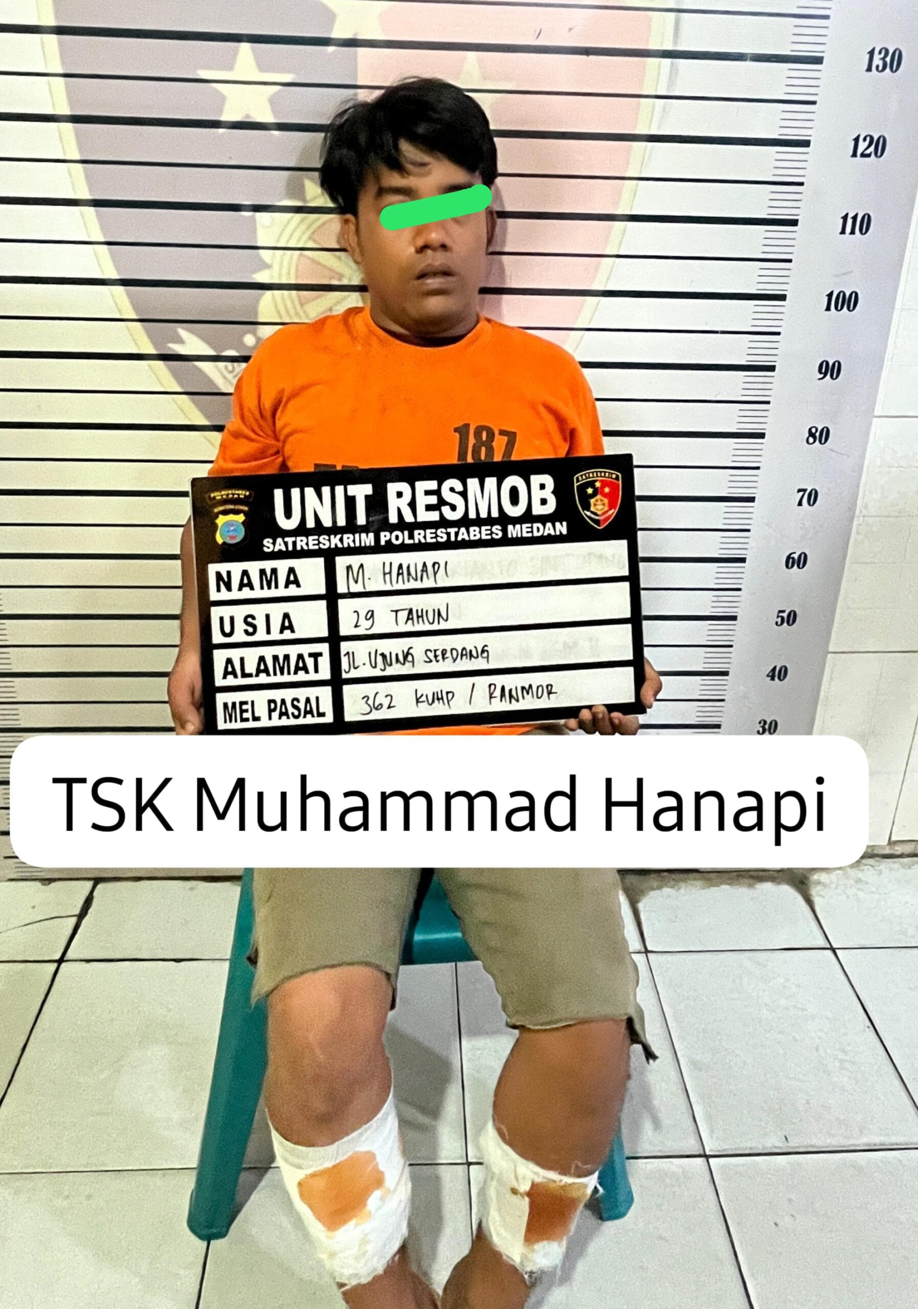 Berdasarkan rekaman CCTV dan penyelidikan petugas di lapangan diketahui pelaku berjumlah dua orang, yang mana salah satu pelaku yang diketahui bernama Mohd. Hanapi (28), warga Dusun I Desa Ujung Serdang Kec. Tanjung Morawa Kab. Deli Serdang berhasil diringkus pada Minggu dini hari (18/5/2025) di sekitaran Jl. HM Joni Kel. Teladan Kec. Medan Area, Kota Medan.