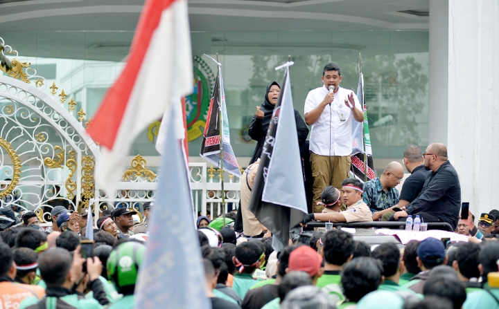 Kehadiran Bobby Nasution sebagai Gubernur Sumut disambut antusias ribuan pendemo. Bobby pun berdiri di atas mobil orator, kemudian menyapa dan menanyakan tuntutan para driver, yang mengenakan seragam kemitraan transportasi online.