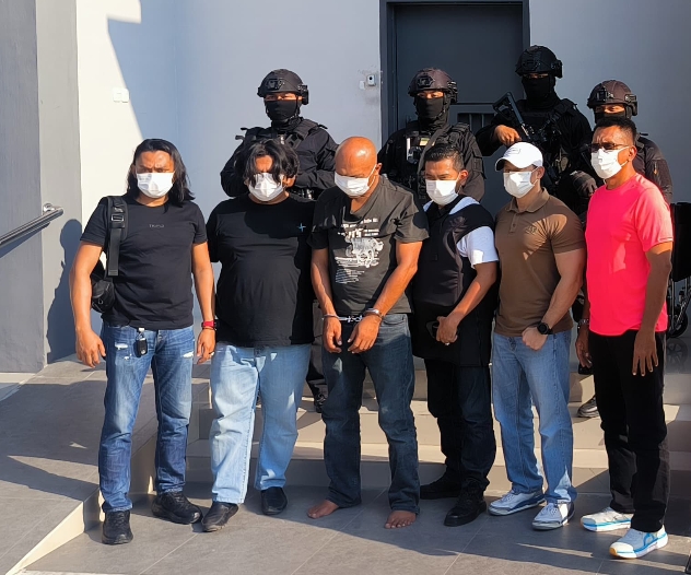 DITANGKAP: Edy Suranta Gurusinga alias Godol (no. 2 dari kiri) saat diamankan.