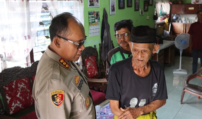 MEDAN – Kapolrestabes Medan, Kombes Pol. Dr. Gidion Arif Setyawan menyambangi rumah kakek disabilitas, Muhammad Yatim atau Amat Yatim korban penipuan dan pencurian di Jalan Sukarame, Kota Medan, Rabu (11/6/2025).