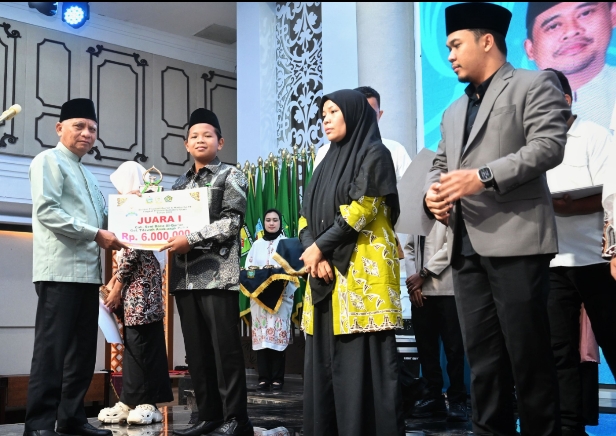 TUTUP: Wakil Gubernur Sumut, Surya menyerahkan hadiah secara langsung kepada Para Pemenang dari semua Golongan Lomba, dan juga menyerahkan Piala Juara Umum kepada Kafilah Kota Medan.