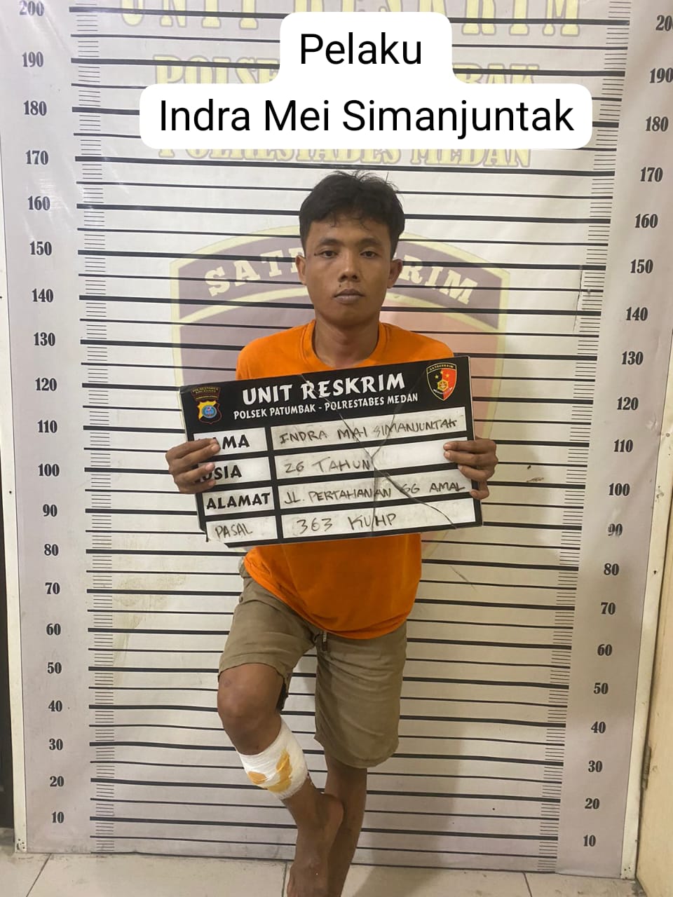 MEDAN — Seorang tersangka spesialis pencurian dengan pemberatan (curat), Indra Mei Simanjuntak alias Membot (26), warga Jalan Pertahanan Gang Amal Desa Patumbak Kampung, Kecamatan ditembak Polsek Patumbak.