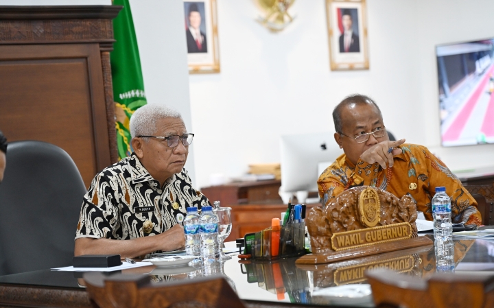 IKUTI: Wakil Gubernur Sumatera Utara (Sumut) Surya mengikuti zoom meeting dengan Wakil Menteri Pertanian Republik Indonesia Sudaryono pada Rapat Koordinasi (Rakor) Monitoring dan Percepatan Optimasi Lahan dan Cetak Sawah dalam Mendukung Swasembada Pangan di Ruang Kerja Wakil Gubernur Lantai 9 Kantor Gubernur Sumut Jalan Diponegoro Nomor 30 Medan, Jumat (20/6/2025).