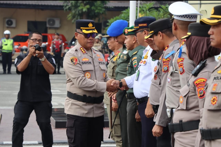 MEDAN – Kapolrestabes Medan, Kombes Pol. Dr. Gidion Arif Setyawan memimpin apel gelar pasukan operasi kepolisian kewilayahan “Patuh Toba 2025” di halaman Apel Markas Polrestabes Medan, Senin (14/7/2025).