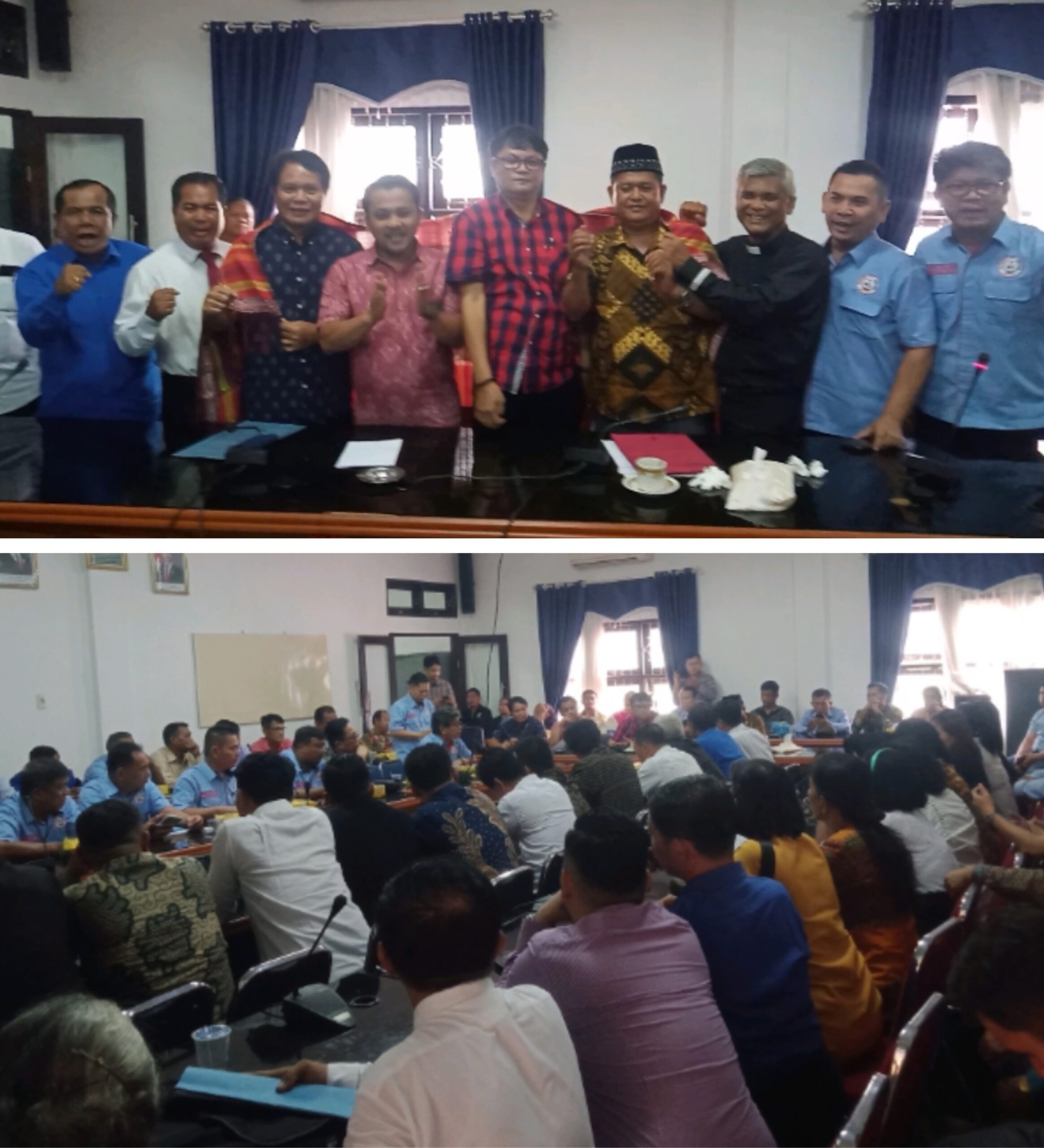 DIULOSI: Pengurus SA-LOM dan Pendeta saat foto bersama dengan anggota DPRD Deliserdang. Dan bawah, anggota DPRD Deliserdang dan pengurus SA-LOM dan Pendeta saat RDP.