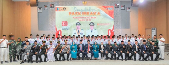 BATU BARA – Bupati Batu Bara H. Baharuddin Siagian, SH, M.Si menjadi pembina langsung pada Pengukuhan Paskibraka Kabupaten Batu Bara Tahun 2025 di Aula Kantor Bupati Batu Bara, Kecamatan Lima Puluh, Kamis, (14/08/2025).