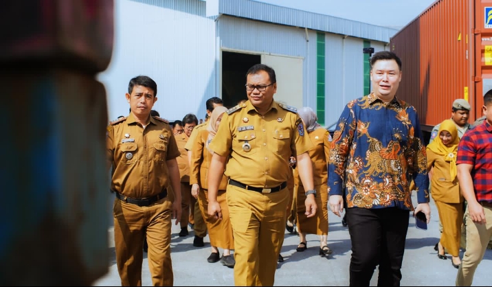 TURUN LANGSUNG : Bupati Deli Serdang Asri Ludin Tambunan saat peninjauan di PT Mark Dynamics Indonesia Tbk.