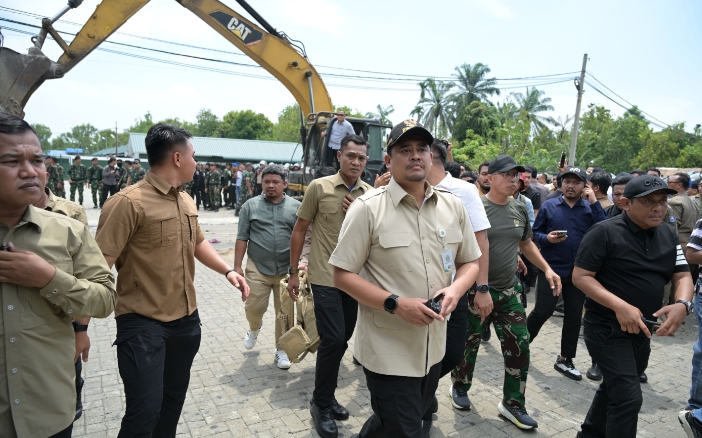 BONGKAR: Gubernur Sumatera Utara, Bobby Nasution saat turun langsung saat pembongkaran Marcopolo.