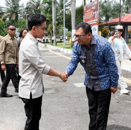 SALAMI : Bupati Deli Serdang Asri Ludin Tambunan saat bersalaman dengan Wakil Presiden RI, Gibran Rakabuming Raka.