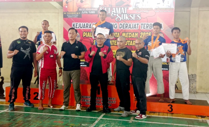 MEDAN – Atlet Tarung Derajat Kota Medan berhasil menyabet juara umum pada kejuaraan Tarung Derajat Piala Walikota Medan se-Sumatera Utara tahun 2025 yang digelar di gedung Gelanggang Remaja Jalan Sutomo Medan, Minggu (07/09/2025).