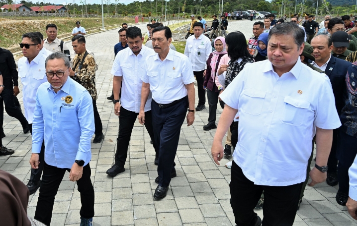 HUMBAHAS – Gubernur Sumatera Utara (Sumut) Bobby Nasution mendampingi Menko Perekonomian Airlangga Hartarto, Menko Pangan Zulkifli Hasan, Dewan Ekonomi Nasional (DEN) RI Luhut Binsar Pandjaitan, beserta Menteri Kehutanan Raja Juli Antoni meninjau Taman Sains Teknologi Herbal dan Holtikultura (TSTH2) di Kabupaten Humbang Hasundutan (Humbahas).