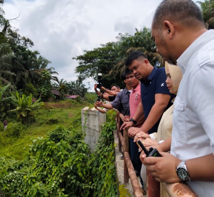 TINJAU : Gubernur Sumatera Utara (Sumut) Bobby Nasution saat meninjau jembatan di Desa Sei Musam dan Kwala Musam Kecamatan Batang Serangan. (ist)