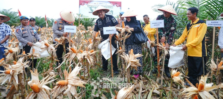Bupati Batu Bara bersama Kapolres Batu Bara dan Forkopimda mengikuti kegiatan ini melalui zoom meeting di Areal Lahan Panen Jagung Desa Perkebunan Tanjung Kasau, Kecamatan Laut Tador, Kabupaten Batu Bara, Sabtu (27/9/2025).