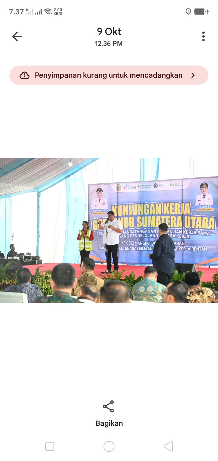 Hal tersebut disampaikan Bobby Nasution saat Kunjungan Kerja sekaligus Penandatanganan Perjanjian Kerja Sama Tentang Pengelolaan Tenaga Kerja di KEK Sei Mangkei, dan Penyerahan Kartu BPJS Ketenagakerjaan bagi Tenaga Kerja Rentan, di KEK Sei Mangkei, Kabupaten Simalungun, Kamis (9/10/2025).