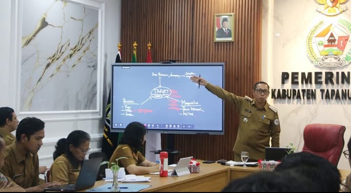 TAPUT – Bupati Tapanuli Utara (Taput) Dr. Jonius Taripar Parsaoran Hutabarat, S.Si., M.Si memimpin rapat dengan Dinas Pertanian, Dinas Ketahanan Pangan, Petani Millenial dan TAPD (Tim Anggaran Pemerintah Daerah) membahas RKPD (Rencana Kerja Pemerintah Daerah) Tahun 2026 yang dihadiri para asisten di Ruang Rapat Mini Kantor Bupati Taput, Tarutung pada Selasa (21/10/2025).