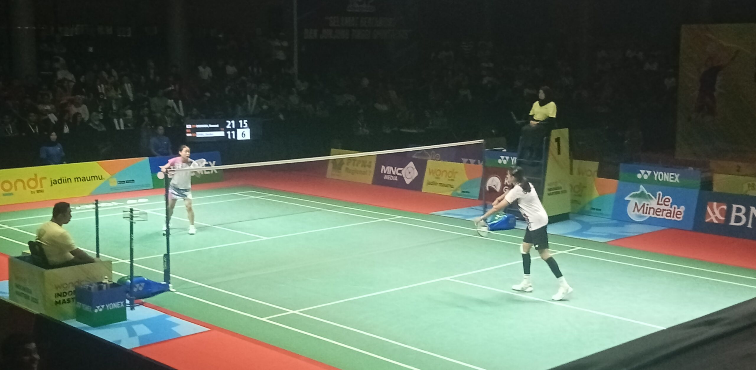 Pada laga yang digelar di gedung PBSI Sumut pada Minggu (26/10/2025) siang, Nozomi menang 21-11, 21-7.
