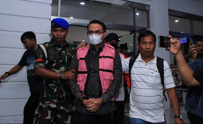 DITAHAN: Irwan Perangin-angin mantan Direktur eks PTPN 2 saat digiring ke tahanan. (ist)