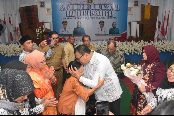 “Saya dan Wakil Bupati (Lom Lom Suwondo) mempunyai program Pendidikan Murah dan Berkualitas (Pemula). Inilah yang harusnya diterjemahkan oleh Dinas Pendidikan bersama dengan tim pemerintah kabupaten dan dalam hal ini tim penganggaran, bagaimana menghadirkan pendidikan murah dan berkualitas itu di Kabupaten Deli Serdang,” ungkap Bupati Deli Serdang, dr H Asri Ludin Tambunan dalam pidatonya di Pelantikan Pengurus Persatuan Guru Republik Indonesia (PGRI) Kabupaten Deli Serdang Masa Bakti XXIII Tahun 2025-2030 di Aula PGRI, Jalan Karya Asih, Komplek Kantor Bupati Deli Serdang, Lubuk Pakam, Selasa (25/11/2025).
