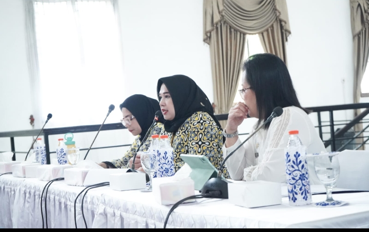 PIMPIN: Ketua Tim Pembina Posyandu Deli Serdang, Ny Jelita Asri Ludin Tambunan saat memimpin Rapat Koordinasi (Rakor) Transformasi Posyandu di Aula Cendana, Lantai II, Kantor Bupati Deli Serdang, Rabu (3/12/2025). (ist)