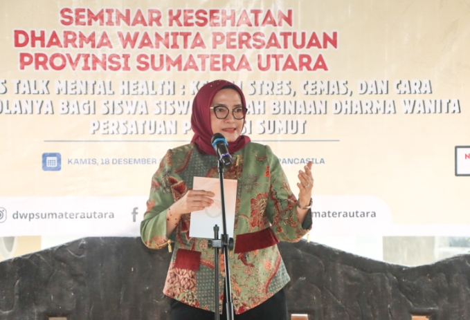 MEDAN – Dharma Wanita Persatuan (DWP) Provinsi Sumatera Utara (Sumut) komit untuk mendukung tumbuh kembang generasi muda melalui Seminar Kesehatan yang bertema “Let’s Talk Mental Health: Kenali Stres, Cemas, dan Cara Mengelolanya”.